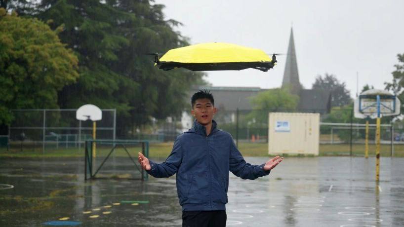Блогер Джон Це создал зонт, который летает рядом с вами и закрывает от дождя.